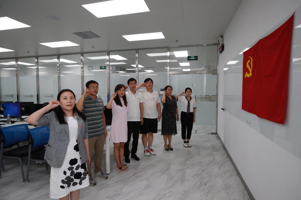 全体党员在支部书记汤京淑老师的带领下,面向党旗重温了入党誓词。党员同志们用铮铮誓言展现了自己永远追随党、永远忠于党的执着与坚定,也令与会教职工心潮澎湃,深受感染。