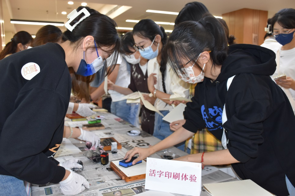 志愿者在指导同学们体验活字印刷