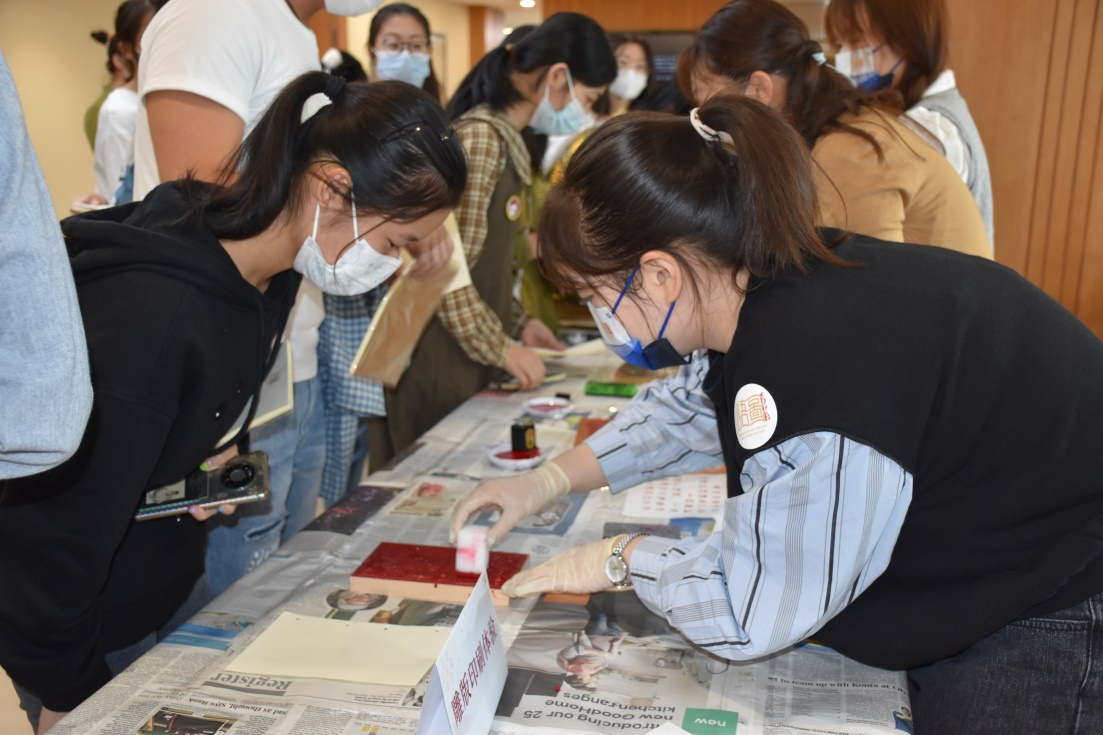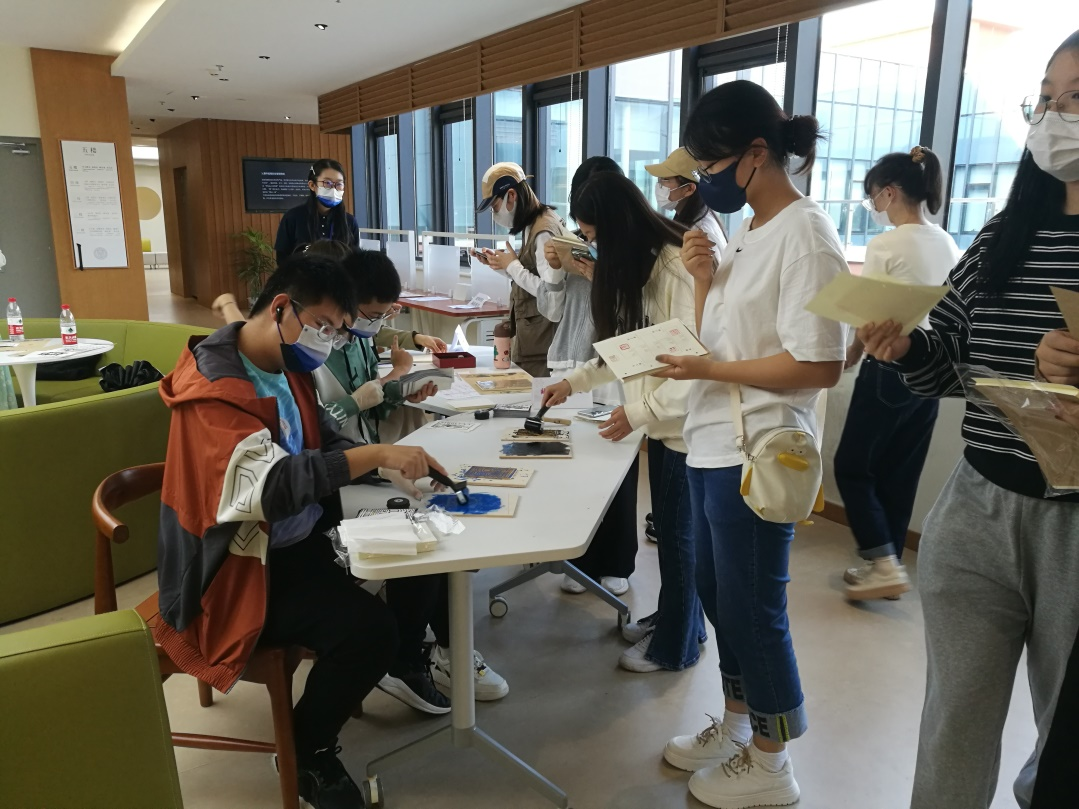 同学们在体验藏书票印刷