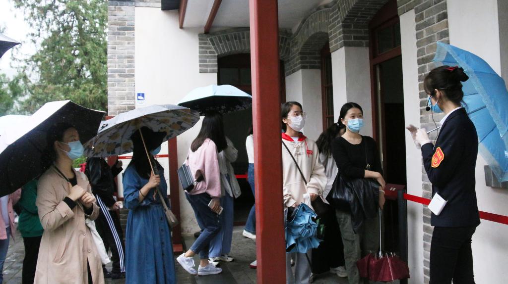 伴着晨间小雨,党支部成员来到了实地研习第一站——双清别墅。1949年3月25日,毛泽东率领中共中央、中国人民解放军总部从西柏坡迁至北平,进驻香山,这里由此成为了中国共产党“进京赶考”第⼀站,见证了中国革命走向胜利的光辉历程。在双清别墅,毛泽东指挥了渡江战役,筹备了新政协,筹建了新中国,写下了《人民解放军占领南京》等脍炙人口的不朽诗篇。这里有毛泽东当年生活工作过的原状陈列;有他与爱子亲切交谈的地方;池塘边,红色的六角亭有特别的纪念意义。