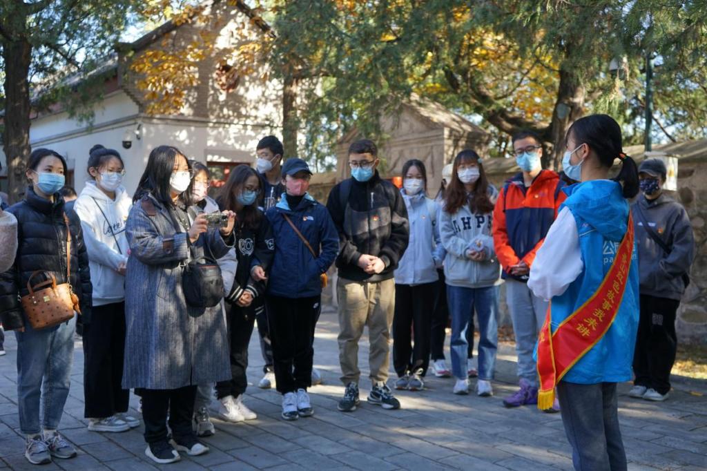 近年来,北京语言大学文学院与香山公园管理处积极开展党支部共建交流,文学院本科生第一党支部与香山公园文化队党支部开展红色“1+1”共建示范活动,推进建立学生实习实践基地,通过开展学习交流会、志愿者培训等工作,以点带面探索红色文化资源品牌打造与对外传播新途径,取得丰硕成果。本次研学活动也获得了文学院分党委的大力支持,安排了来自文学院的志愿者王慧、高悦两位同学专程为骨干班学员同学们讲述了双清别墅的红色故事。从《幸福的瞬间》到“南京解放”,一张张老照片、一段段故事展示了老一辈革命家的伟人气质,更彰显了新中国成立前夕,在这一方红色沃土,领袖们在朴素环境中运筹帷幄,在困难条件下决胜千里的伟大精神。
