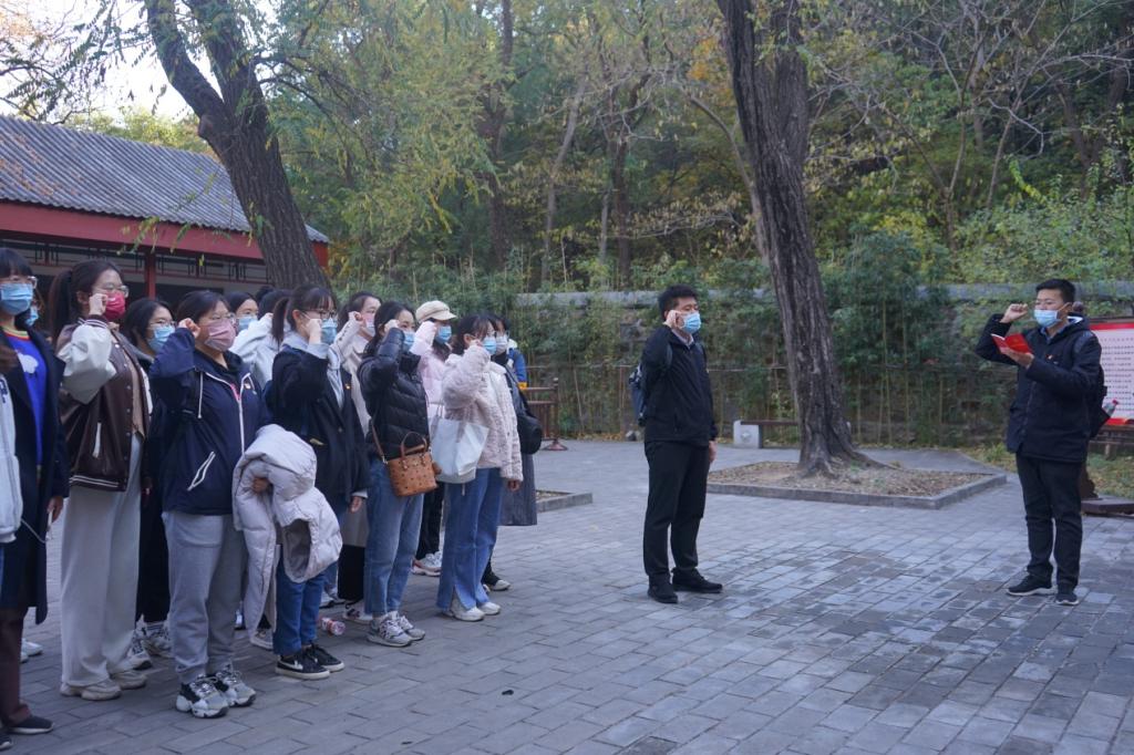 “香山红叶舞凉秋,风过枝头似火流。古寺钟声雾里来,憩鸟惊飞扰晨幽。”在金秋的末尾,与“桐语先锋”的党员同志们一行游览香山公园,欣赏金秋红叶之红、感悟革命道路之红。七十余载,双清别墅院里的银杏树下伫立过伟人身影,也可见代代有志青年。在1949年,香山见证了新中国的诞生之路,如今我们重走进京赶考路,也在不变的秋色与变化的时代中寻得初心和信念的力量。移步易景,香山的秋日之美里总有那一份遒劲与刚毅,那是红色的血脉,是精神的传承。重温入党誓词时,想起“生在红旗下,长在春风里”,生逢盛世的我们更要牢固树立听党话、跟党走的意识,通过学习丰富自身、脚踏实地,在传承与开拓中赓续红色血脉。