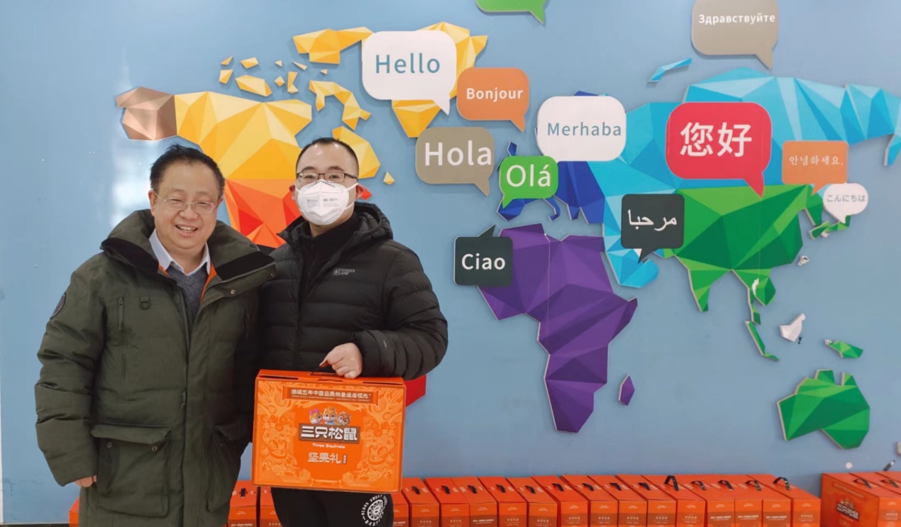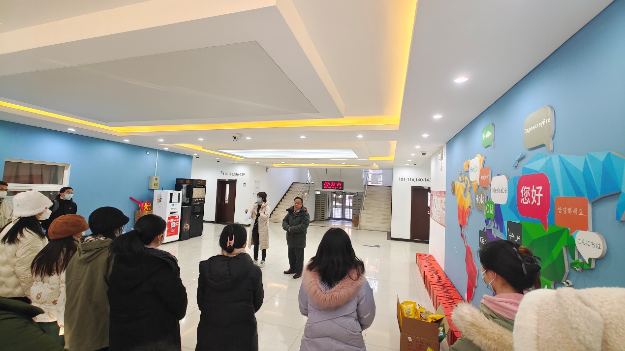 1月15日上午,正值小年,宜备年货。外国语学部在教五楼举行了留校学生春节慰问活动。学部提前为留校过年的83名学生购买了坚果、薯片等年货,学部书记罗林教授代表学部200多名教师来校慰问留校学生,送出关怀和新春祝福。