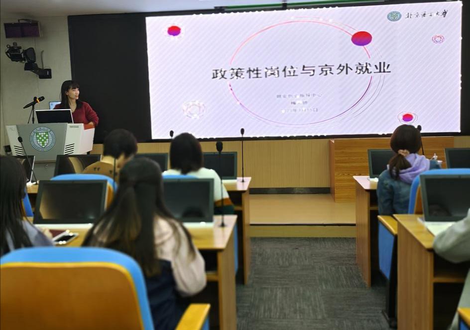 3月15日上午,外国语学部邀请就业创业指导中心梅天骄老师为全体辅导员老师进行了就业培训。梅老师以学生们普遍关心的政策性岗位和京外就业为主题,向辅导员老师们普及了近年来相关的就业形势与政策信息。