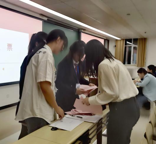 随后,大会主持人向学生代表们详细介绍了代表候选人预备人选的产生过程、选举流程以及注意事项,通过举手表决通过了代表候选人建议人选名单、监票人名单、计票人名单。在总监票人李晗老师的主持下,参会代表有序填写选票,依次上台投票。投票结束后由总计票人与计票人进行计票,由总监票人与监票人进行监票。