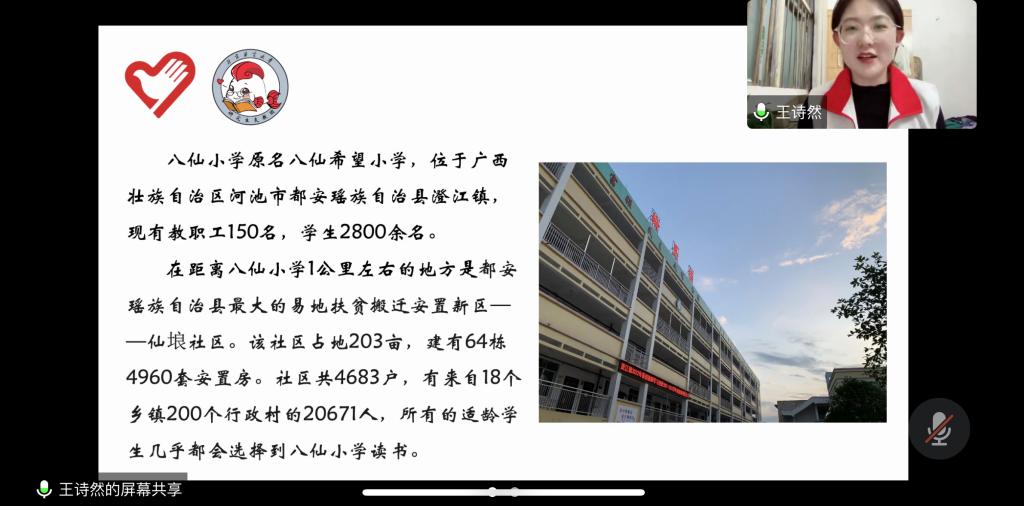 外国语学部西方语言文化学院2022届法语专业本科毕业生王诗然,2022年“北京市优秀毕业生”、北京冬奥会北京市“先进个人”、建团100周年北京市“优秀共青团员”。曾任北京语言大学志愿服务总队队长,现任北京语言大学第24届研究生支教团队长,服务于广西壮族自治区河池市都安瑶族自治县澄江镇八仙小学。