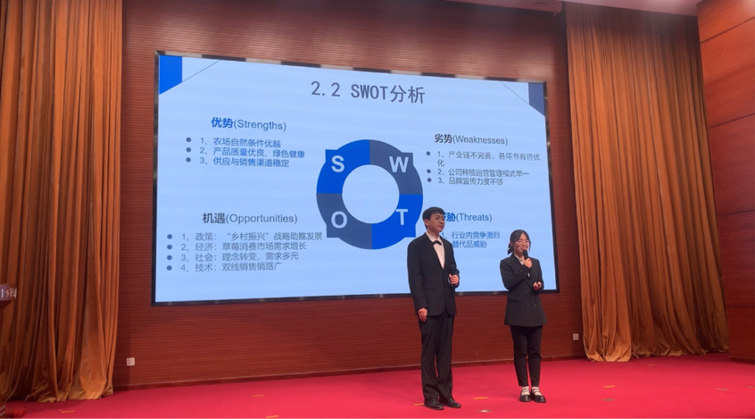本届决赛共分为两个环节,第一环节为团队展示环节。八组选手通过运用SWOT、STP等模型进行市场定位与市场环境的分析,并以发布会、短视频等多元形式辅助展示,增强营销展示的趣味性和创造性。选手们通过多种途径挖掘客源,赢得市场,精彩的表现和深入的分析赢得台下老师与学生的热烈掌声。