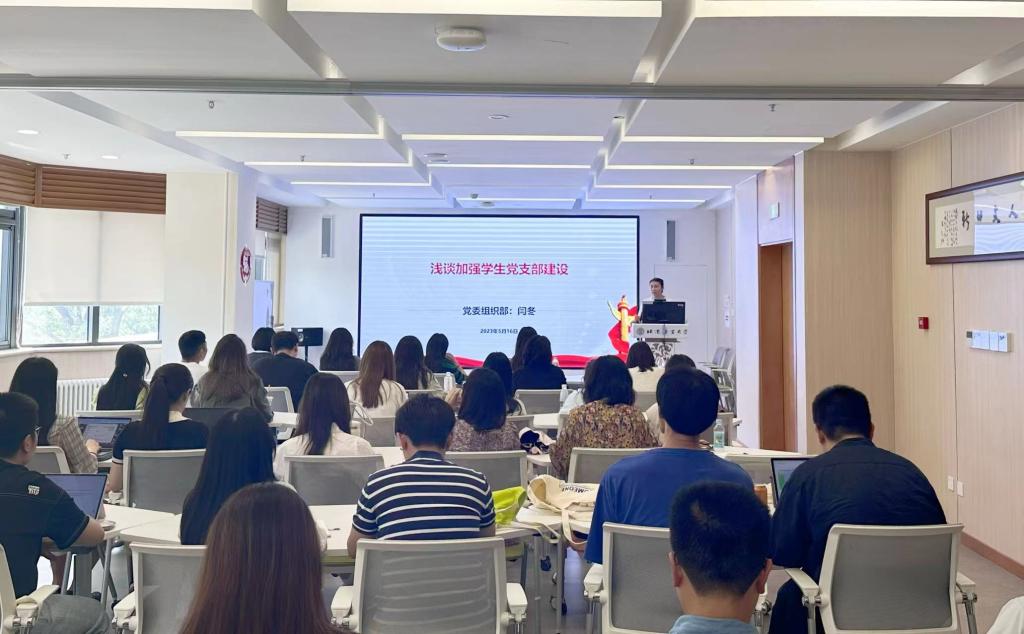 闫冬老师以“浅谈加强学生党支部建设”为题进行了报告。她分别从学生党支部和支部书记的定位、建设意义、要求和主要职责,学生党支部工作常见问题、支部工作解析和加强学生党支部的思考四个方面展开了全面的讲解。她指出,学生党支部是高校中最活跃、最年轻、最具创新性的力量,是党联系青年学生、做好思想政治工作的桥梁和纽带,对巩固和扩大党执政的青年群众基础、提升高校党委执政能力和水平、培养担当民族复兴大任的时代新人具有重要意义。学生党支部聚集了大学生中要求进步的群体,抓好学生党支部建设是高校立德树人根本任务的题中之意,也是检验高校党的建设成效的重要标准。另外,她强调到加强学生党支部要定向引导,抓牢学生党支部建设的出发点;选树典型,找准学生党支部建设的突破点;创建品牌,打造学生党支部建设的金钥匙;宣传推广,用好学生党支部建设的加速器。从“身入”到“心至”,真研究问题、研究真问题,扎实地开展工作,创造性地开展工作,有成就和成长地开展工作。