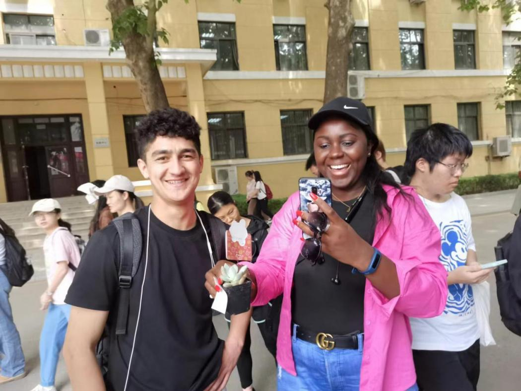 值得一提的是,在这一次的活动中,不仅有中国学生参与到了其中,外国留学生们也纷纷签名认养多肉,同时带着集章卡辗转于各个点位,以获得不同的印章。