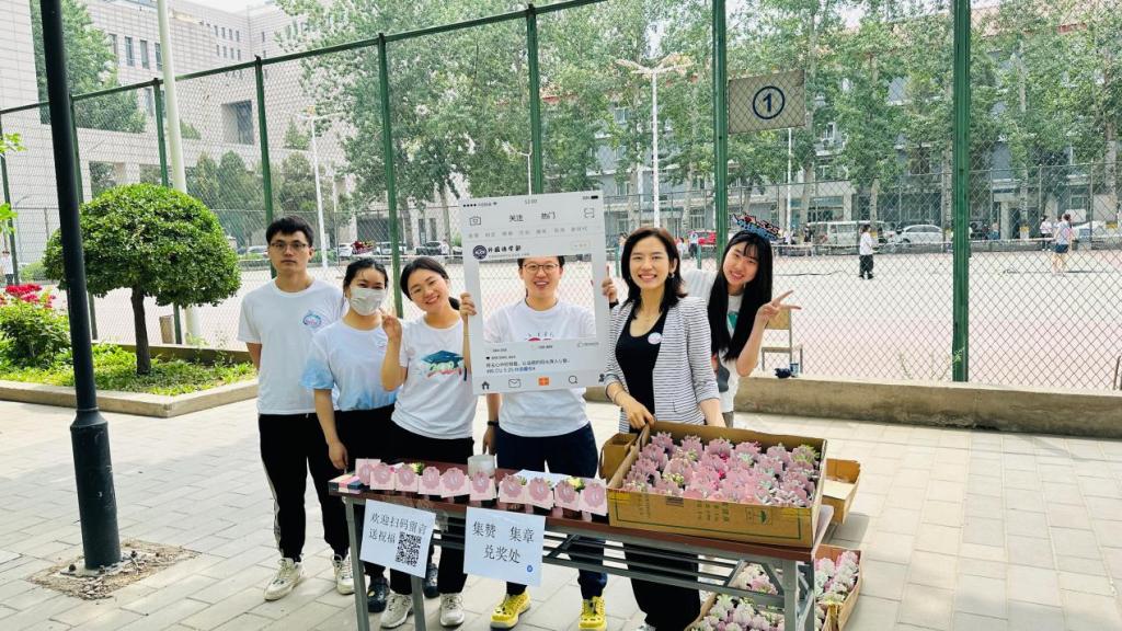 在师生们的热情参与下,外国语学部准备的六百盆多肉很快就被认养完毕,大家都收到了暖心祝福。而与此同时为集章、集赞准备的小礼品也所剩无几。