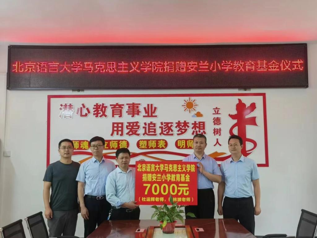 5月23日,两位教授来到我校定点帮扶村安兰村,深入一线,走访帮扶户,了解生产生活情况。在安兰小学,实地了解教学管理、师资队伍、安兰书屋建设等情况,并向安兰小学捐赠教育基金7000元助力安兰小学教育事业发展。随后,杨林坡副教授在都安高中举行了高考招生宣讲,介绍北语及招生政策,鼓励大家踊跃报考北语。