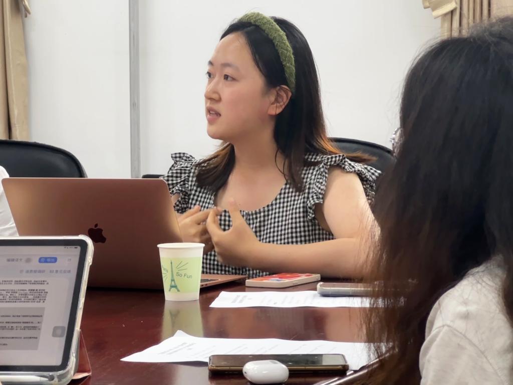 参会学生代表围绕“练就实际本领,讲好中国故事”进行分享交流。2020级新闻学本科生李世煊将理论知识与自身实际相结合,总结我们不仅要培养自己的新闻专业能力,更要深入了解中国的历史文化传统,把握好中国故事的内涵和精髓;2021级新闻学本科生毕瑞真联系在北语视频制作中心的经历,深刻体悟到如何用镜头语言向国外友人讲好中国故事;2022级网络与新媒体本科生钟卓轩以团日活动为切入点,认识到做好本职工作、提升个人形象就是为讲好中国故事做出自己的贡献;2022级研究生王子芙结合自身科研、志愿经历,分析北语作为“小联合国”有其文化环境优势,我们要把握好环境优势,抓住机会提升个人能力。