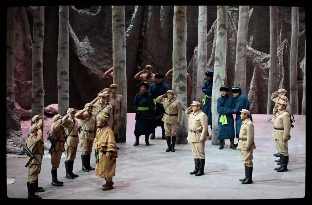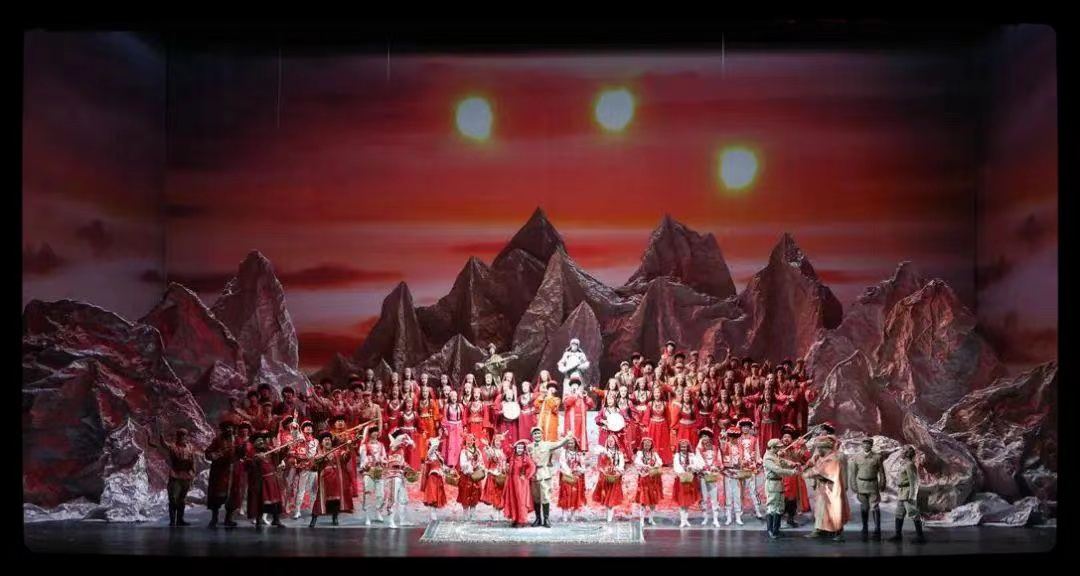 《冰山上的来客》是最早反映新疆各民族军民团结一致反对民族分裂、国家分裂的影片,通过各民族共同抗敌,呈现了中华民族共同体意识,也是共同体美学的典范。《冰山上的来客》充分发挥了优秀影视艺术作品对广大学生思想引领和价值导航作用,整部歌剧具有深刻的教育意义。歌剧反映了我国边防军民团结战斗保卫边疆。热情讴歌了边防战士机智勇敢的精神和各民族之间的深厚情谊。虽然歌剧结束了,但《花儿为什么这样红?》从歌剧唱进了学生的心中 ,从边疆唱到了全国,它所代表的深刻意义学生也永远不会忘却。