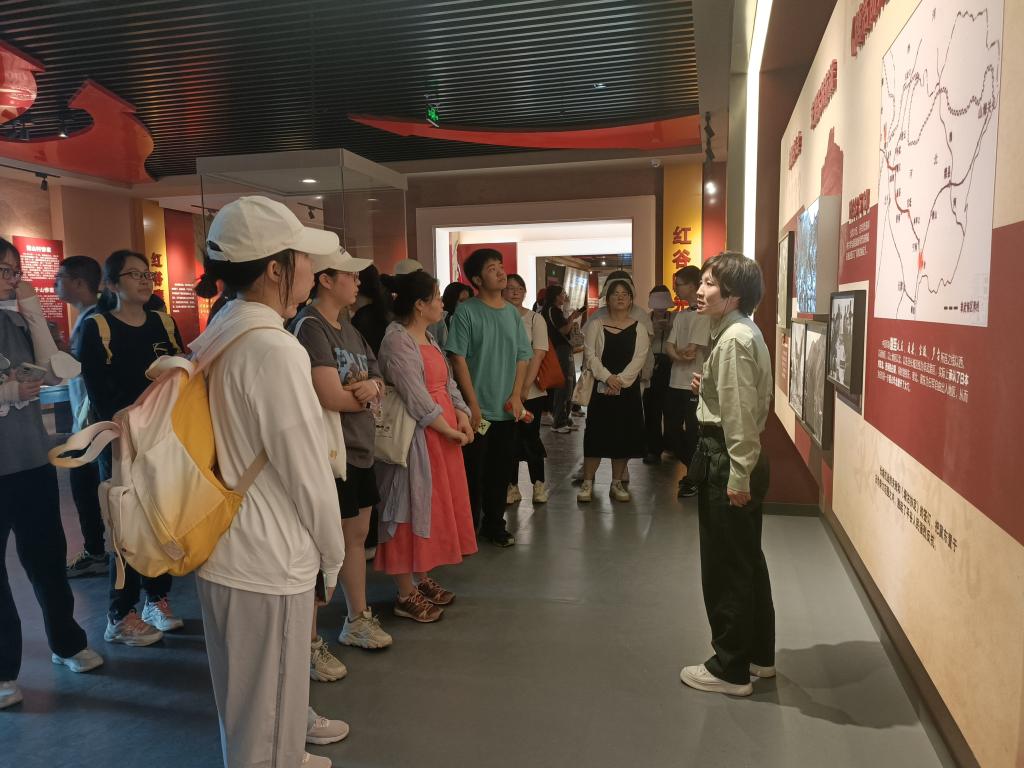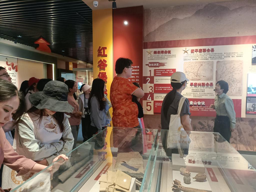 之后一路向上,大家来到了红谷主题教育馆。馆内以历史实物、实景还原、多媒体影像等方式,从红谷曙光、红谷惊雷、红谷明灯、红谷堡垒、红谷鏖战、红谷强音、红谷巾帼、红谷荣光八个方面来呈现冀东西部地区的抗战历史、英雄人物等,体现了平谷革命老区深刻的红色文化精神。