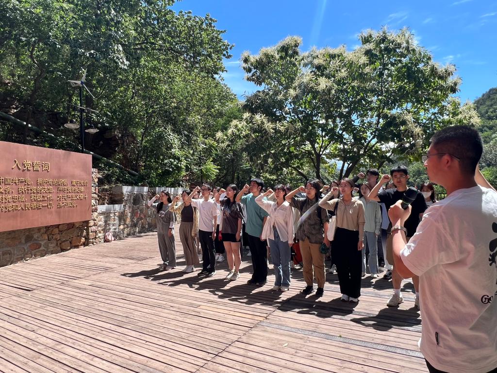 6月10日,文学院本研党支部党员前往平谷区山东庄镇桃棚村红谷党员教育基地参观学习,本科生第二党支部书记、辅导员万阳卓带队前往。