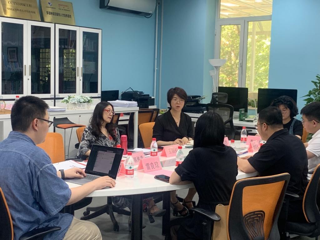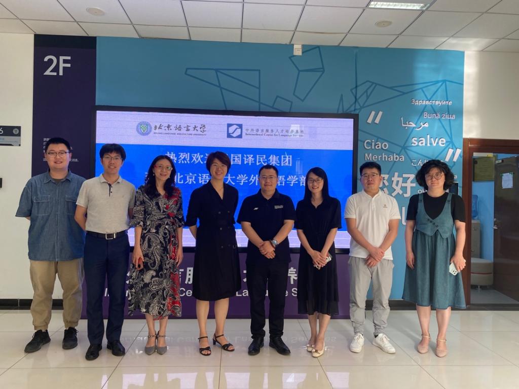 6月14日下午,译国译民集团北京分公司总经理王晓飞、高校校企合作经理刘笑珲、合伙人雷良琼一行来到北京语言大学外国语学部开展了访企拓岗的交流活动。外国语学部党委副书记刘洁,高级翻译学院院长王丽虹,高级翻译学院本地化专业负责人、笔译系主任韩林涛,外国语学部辅导员刘文韬、李晓航参加了本次的交流活动。