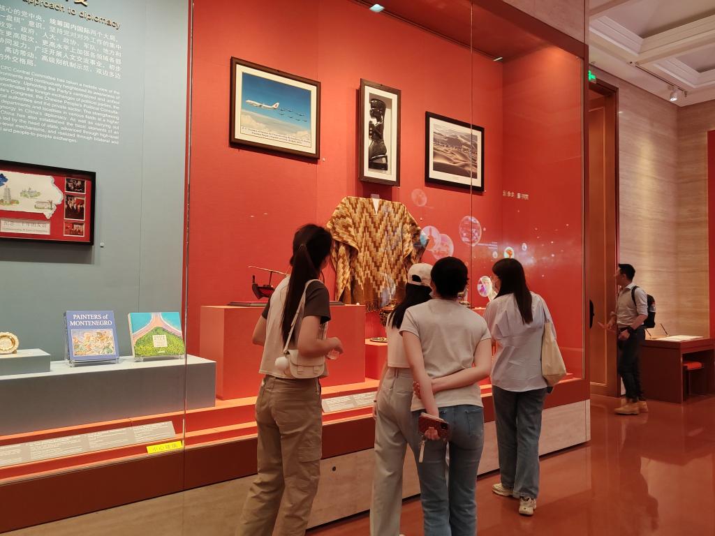 主展区主要展示党和国家领导人在外交活动中受赠的代表性礼品。跟随工作人员的讲解,师生还走进专题一区和二区,专题一区展出了党的十八大以来主场多边外交活动的对外赠礼,专题二区主要展示了体现不同文明文化和异域风情的受赠礼品。