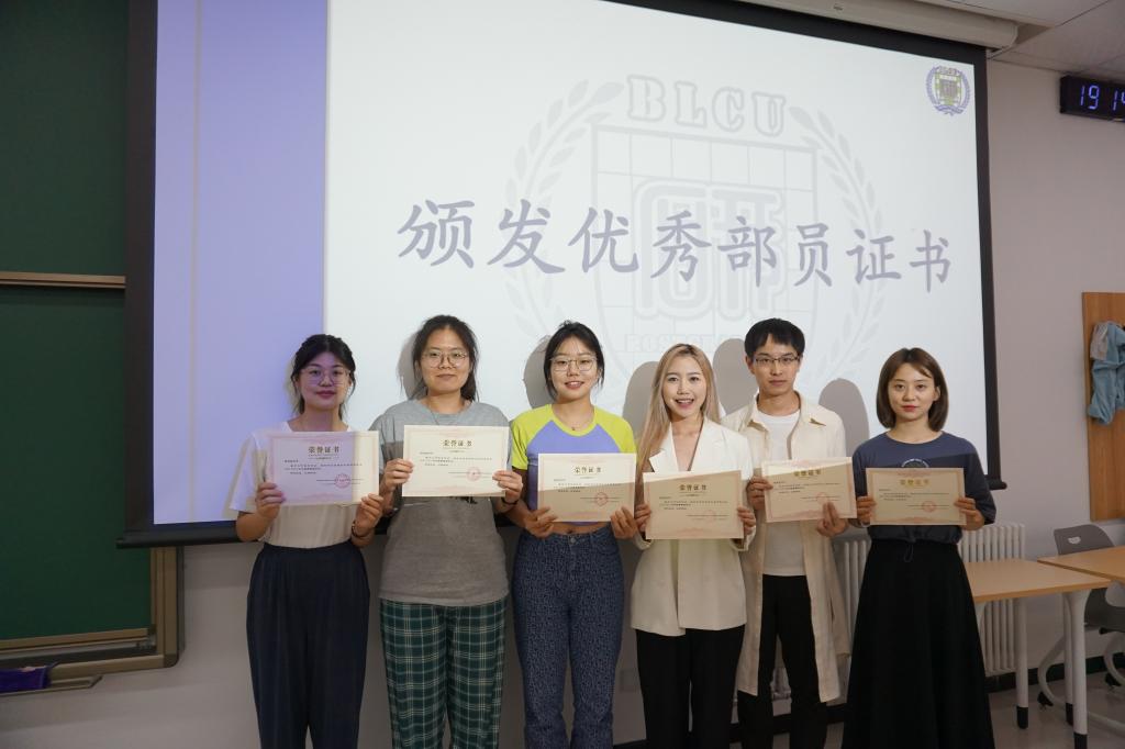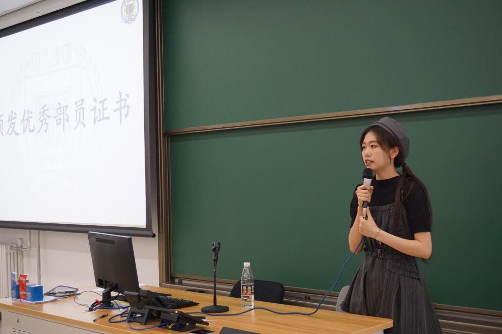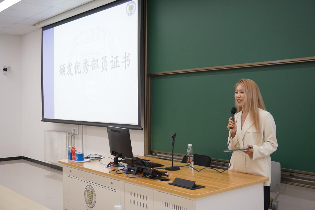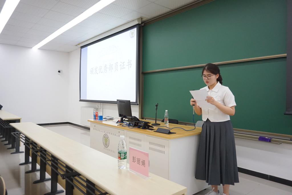 随后,公布优秀部员名单并颁发证书。办公室薛建东、张新宇、张骞、高远,联络部彭祥悦、张萌尧、黎美呈、孙羽诺,权益部胡娅舒、汪小雯、孙嘉乐,宣传部何昕怡、姜迈千、张嘉雯、王玮、周航、孙泽惠被评为本学年优秀部员。薛建东、彭祥悦、孙嘉乐、姜迈千分别作为各部门优秀部员代表进行发言。四位同学均认为,过去一年的工作充实而有意义,在服务他人的过程中,自身的能力和素质也得到了极大的锻炼和提升。其中权益部孙嘉乐同学表示,自己会在未来的生活中继续关注学生权益问题,并将这份责任不断传递下去。