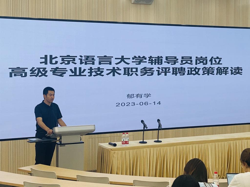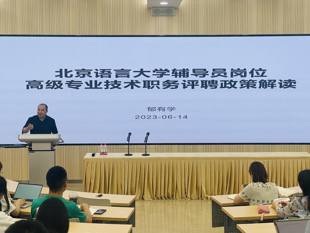 6月14日下午,我校辅导员能力提升培训班第十讲暨辅导员高级专业技术职务评聘政策与职业发展专题培训顺利举行,本次培训由校长助理、人事处处长郁有学主讲,活动由党委学工部部长武玉洲主持,党委学工部、研工部及本研各培养单位辅导员老师参加此次专题培训。