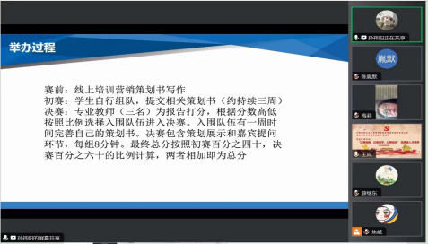 活动开始,山西财经大学工商管理学院管理实务教研室党支部副书记焦嶕首先介绍学院管理案例大赛和产教融合情况,随后北京语言大学商学院教工党支部孙祎阳老师以营销大赛为例,介绍学院学科竞赛开展情况。