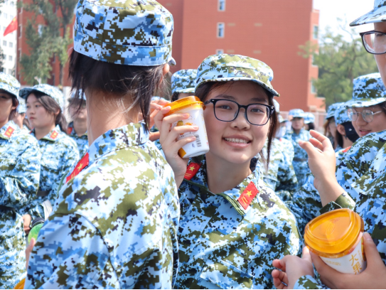 此次慰问,后勤服务集团为军训团的同学们准备了酸奶和巧克力派。慰问品在教官的组织下有序发放到每一名参训学生手中。同学们脸上洋溢着开心的笑容,上午军训的疲惫也被一扫而空。