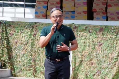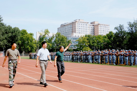 9月1日上午,后勤服务集团党总支书记谢刚老师和办公室主任何永发老师来到军训现场,代表学校后勤服务集团慰问我校2023年军训团全体师生。