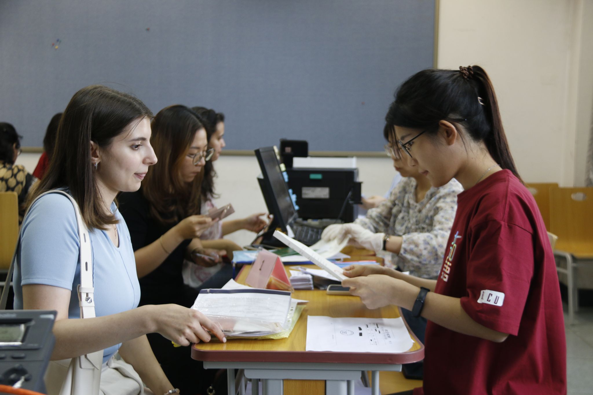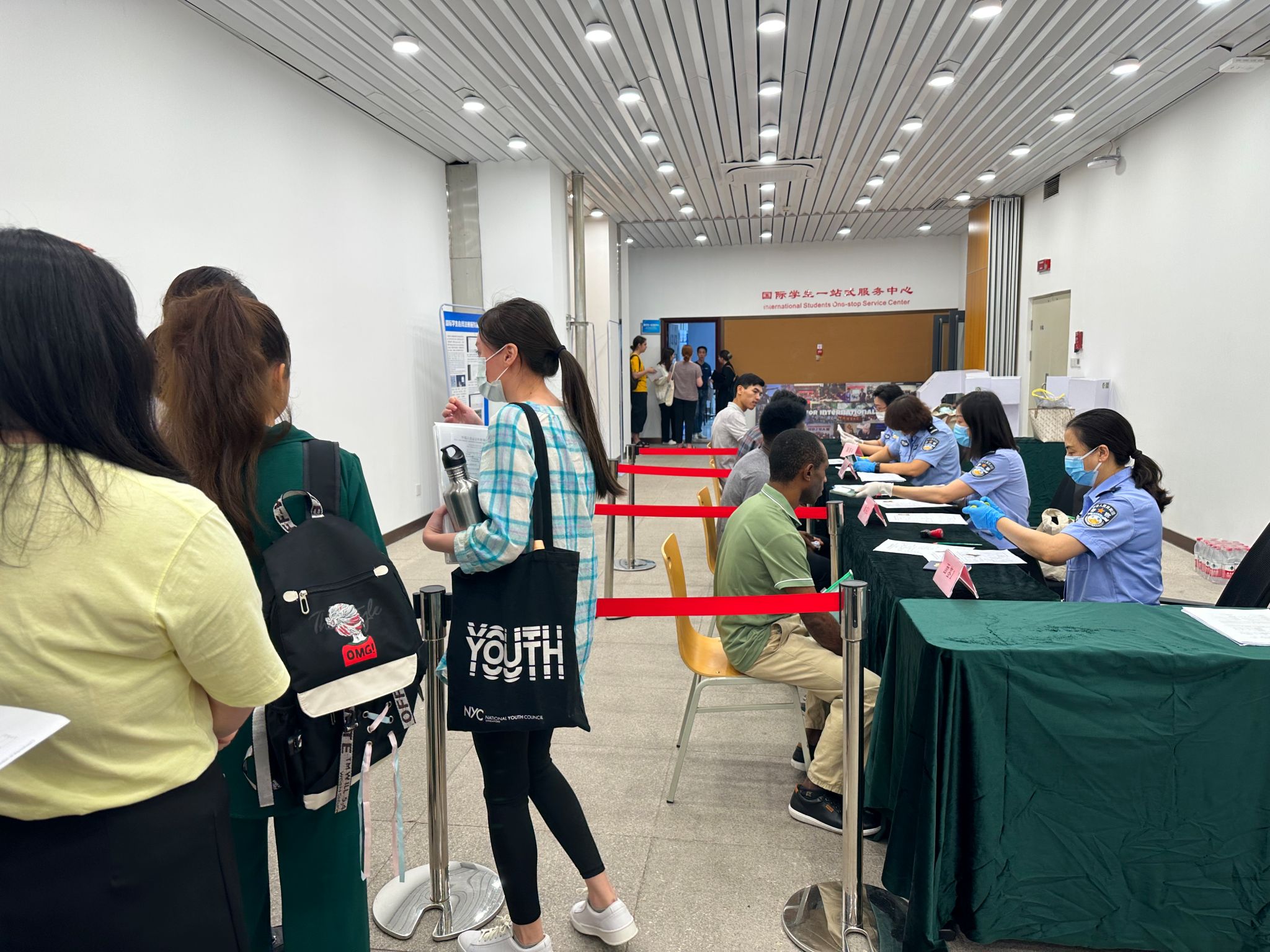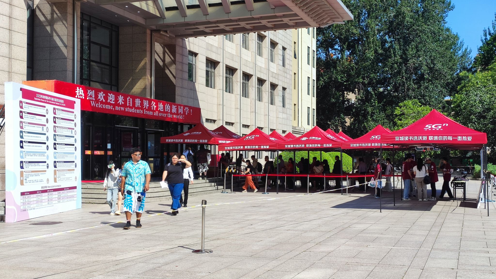 为妥善做好相关工作,集中迎新报到期间,在后勤服务集团、信息化办公室和保卫处等单位的大力支持下,国际学生管理处会同国际学生招生处、财务处和国际中文学院、汉学与中国学学院、应用中文学院分别设立总服务台和材料审核、系统注册、学院报到、学费缴纳、保险办理、电话开卡等服务窗口,为新生提供便捷的一站式服务。学校为每名新生准备了包括国际学生手册、校园生活指南、校历、地图、校徽、国际学生安全须知等材料在内的新生材料包,并在报到注册现场配备了英语、法语、俄语、韩语、日语、西语等多语种中外学生志愿者,及时为新生答疑解惑、帮助大家办理相关手续。