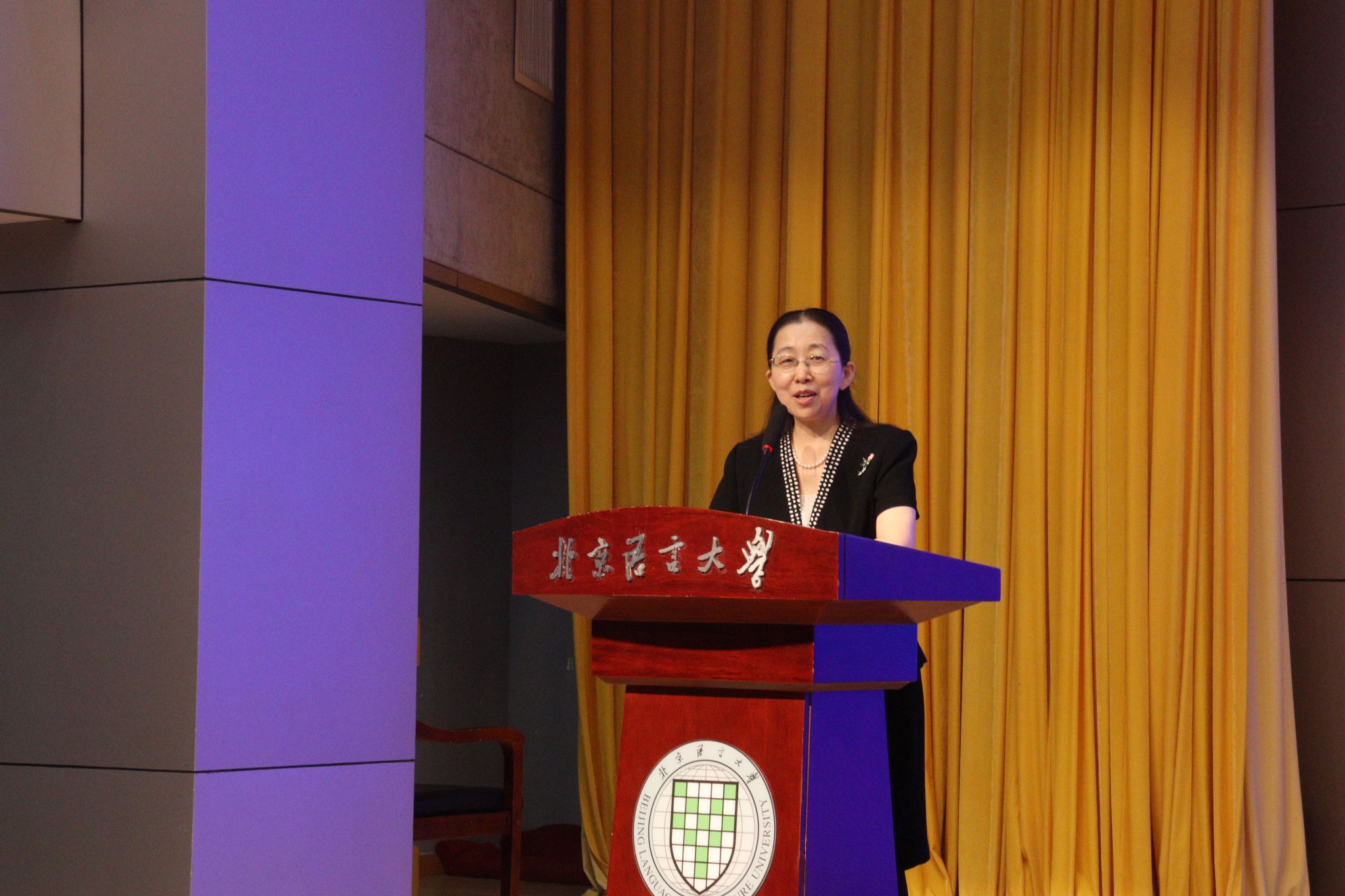 最后,教师教育学院院长施家炜教授向同学们详细介绍了教院的历史文化,展示了教院的辉煌科研成就与雄厚师资力量,列举多位极高声望的领军教师,并结合当今世界发展大势与本国国情,强调了汉语国际教育在中国发展与对外交流过程中的重要性,指出同学们将面对的现实状况与挑战。她期待同学们能够培养自己的多语多文化学习能力,开拓国际视野,注重人格修养与信仰锻造,践行“德行言语,敦睦天下”的校训,承担起作为一个教院人进行中华文化传承与传播、沟通世界的责任。