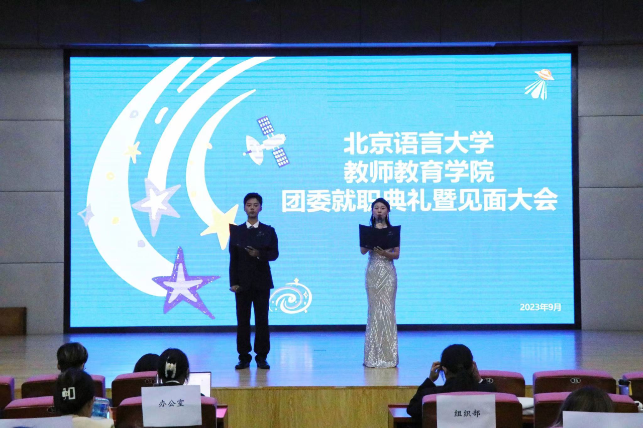 学院团委副书记曹文潇老师宣读了教师教育学院团委新一届的学生干部成员任命书,并向新部员表示了热烈的祝贺与殷切期待。