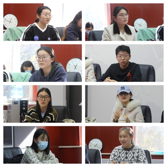 座谈会围绕“喜欢与不喜欢的课程及特征”“如何提高学生的评教参与率”“学生获得感与教师教学质量的关系”“教师给分与教学评价的关系”“对教学督导、学生评教与学风建设的意见建议”等方面展开。外国语学部8名学生教学信息员依次发言,对于学校教育教学质量监测评估工作特别是学生评教以及教师教学等,畅所欲言,各抒己见,建言献策。