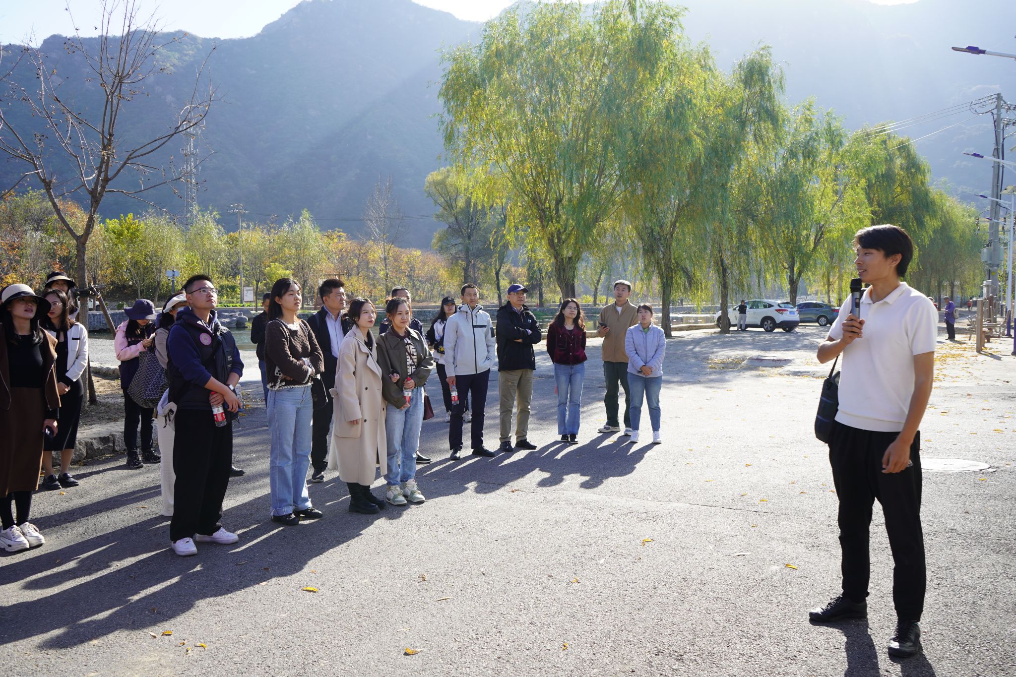 来到四渡河村后,派驻北京市怀柔区渤海镇四渡河村第一书记王天宇、四渡河村驻村创业团队核心成员、我校2023届毕业生刘慧敏同学及我校2020级金融2班的李俊辰同学热情接待了北语一行。