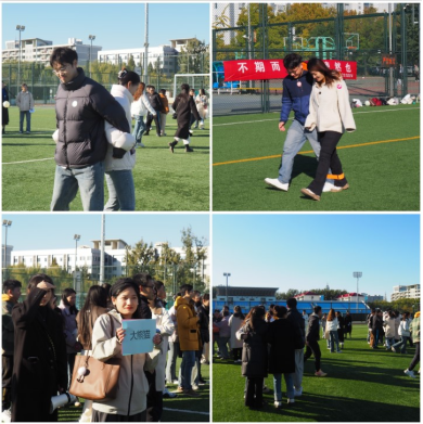 下午1点30分,同学们准时在北航足球场汇合。活动伊始,大家轮流进行自我介绍相互认识,并通过记忆接龙小游戏逐渐熟络起来。之后,在主持人和工作人员的带领下,同学们10人一队,分别完成了考验默契度的“运气球”和“两人三足”,考验团队合作能力的“你比我猜”,以及考验反应能力的“五毛一块”游戏。场上气氛活跃,欢声笑语,大家玩得不亦乐乎。