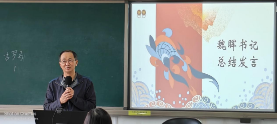 魏书记总结时表示,22计1团支部本次主题团日活动开展的非常成功,有创意也有意义。创意在于活动形式多样:领学忆古思今,情绪饱满,同学们参与度高,发言积极。意义在于紧跟时事:团日活动当天是“一带一路”倡议提出十周年,同时高峰论坛刚刚拉下帷幕。魏书记指出当下国际形势错综复杂,提高中国的国际话语权和话语力,当代青年义不容辞。同时魏书记还提倡集成创新,结合计算机科学与技术专业的特色,以“科技赋能‘一带一路’”为例鼓励同学们要不断提升专业能力,放眼世界,做时代需要的复合型人才。