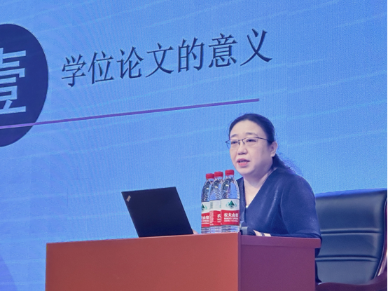学院本科教务秘书张雨婷老师从论文管理角度出发,以近年本科毕业生的高频问题为基础,就论文的重要环节与文件要求进行细致讲解,提醒同学们核对确认学分、关注通知发布、牢记时间节点与查重要求、留意存档文件的格式与命名,并针对如题目修改、请假延期和实习实践等特殊环节做出说明。