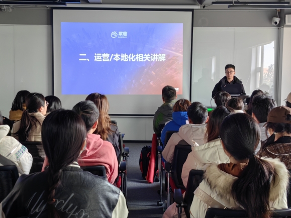 活动伊始,隋意老师带领北语师生参观了集团工作区、餐厅、健身房等办公环境,随后一行人来到了培训教室。隋老师就掌趣公司背景、发展历程、重点项目做了详细介绍。接下来,掌趣本地化部门陈绎夫老师介绍了运营和本地化岗位工作。陈老师就本地化、国际化、全球化与翻译这四个不同的概念进行了详细讲解,并列举了游戏本地化实践过程中的案例来丰富同学们对游戏本地化的认识。随后,掌趣人工智能部门王康老师介绍了前沿的AI游戏产品开发情况,令同学们叹为观止。接下来,正在参与掌趣本地化实习工作的外国语学部谢妮同学分享了自己的工作感受。