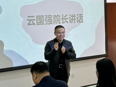 云国强院长向2023级新生同学们送上最美好的祝愿,表示同学们带来了新生希望一般的抚慰,给人以疗愈式的心情。云院长提出班主任老师会在学习、生活等各个方面为大家提供帮助,并祝愿老师和同学们在未来的四年时光里能够互相成就、共同成长。