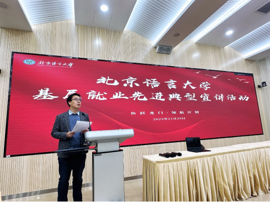 11月29日晚7点,由学生处、校团委共同举办的“鱼跃龙门领航计划”北京语言大学基层就业先进典型宣讲活动在教二101举办。学生处武装部、就业创业指导中心相关负责老师以及“桐语先锋”本科生骨干党员培训班、“青语”团校骨干班百余名同学共同参与本次活动,宣讲活动由学生处就业创业指导中心主任刘喆主持。