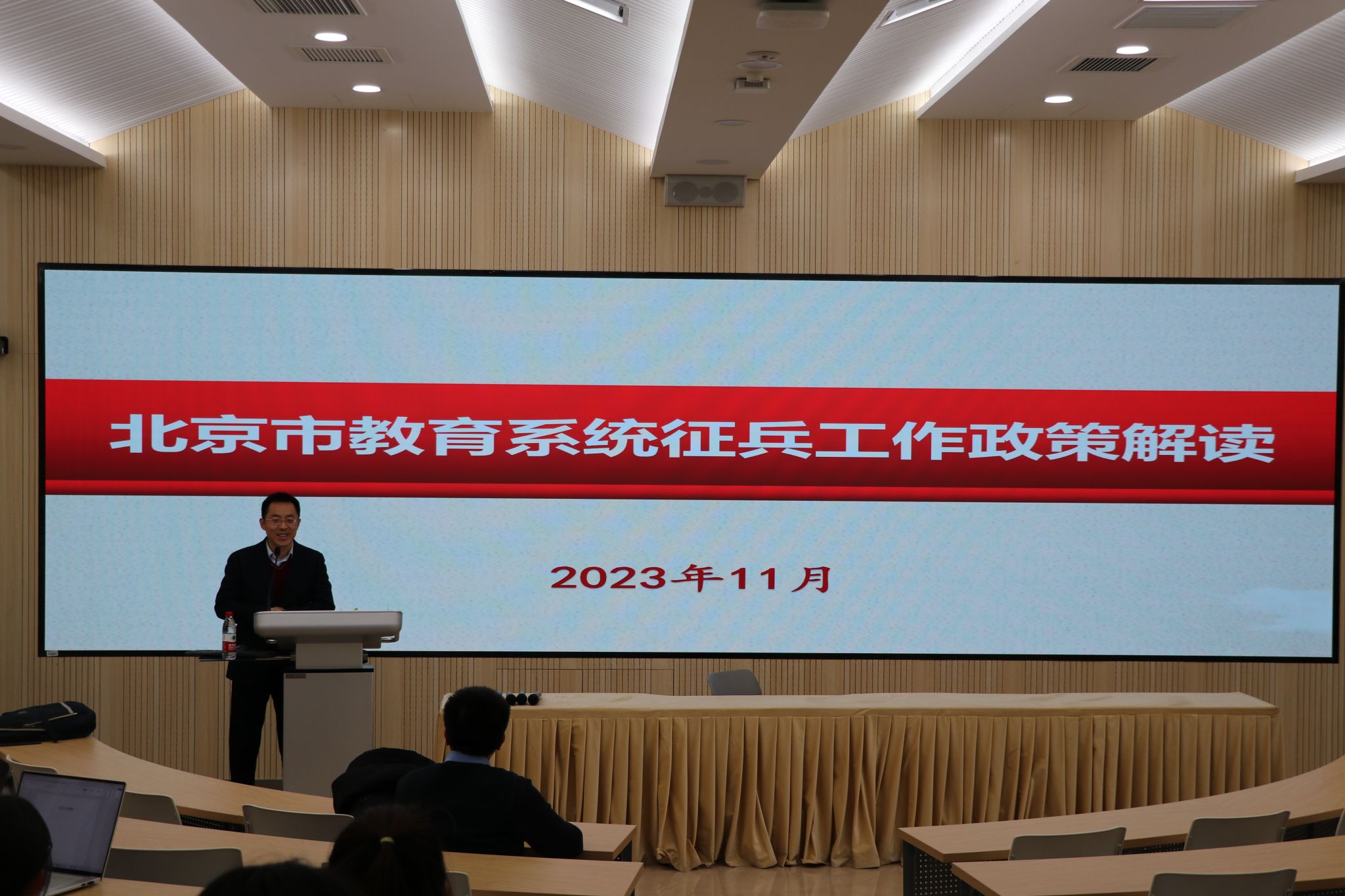 本次宣讲培训会是我校丰富大学生参军入伍工作开展形式、拓宽征兵工作开展路径的创新举措,邀请北京市征兵办工作人员系统性讲授政策理论,将以武装部工作人员、辅导员队伍为骨干的征兵工作人员培训与入伍意向学生宣传动员在同一时空内联动开展、有机结合、相互带动、相互激励,既强化了征兵工作队伍的理论与工作水平,提升了学校征兵工作队伍服务强军兴军和人才培养崇高事业的责任感、使命感,又激发了同学们参军报国的远大理想,进一步推进了学校征兵工作和国防教育的开展。目前,2024年征兵工作已经开始,武装部将继续开展一系列国防教育及征兵宣传活动,以大学生参军入伍为特色载体推动落实“立德树人”根本任务,进一步鼓励我校有志青年携笔从戎、投身军旅,激发“请党放心 强国有我”的青春热情,将个人理想融入实现中国梦、强军梦的伟大实践中,为巩固我国国家安全,建设强大国防力量,实现中华民族伟大复兴保驾护航。