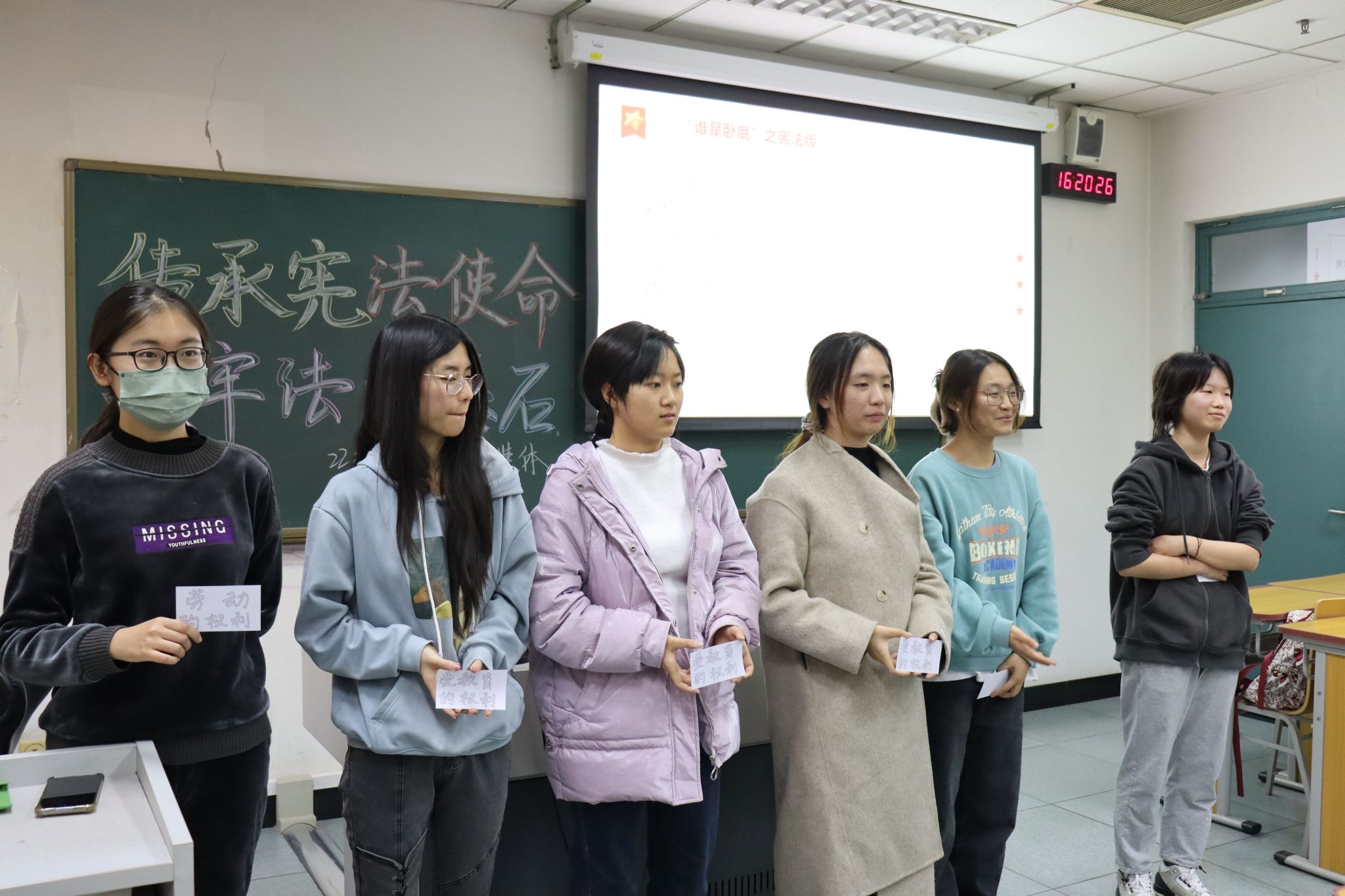 班会还设置了游戏环节——“谁是卧底”宪法版,参与的同学阐释了自己对宪法相关的词汇的认识和理解,在轻松愉悦的氛围中交流法治知识,学习了更多和宪法相关的内容。