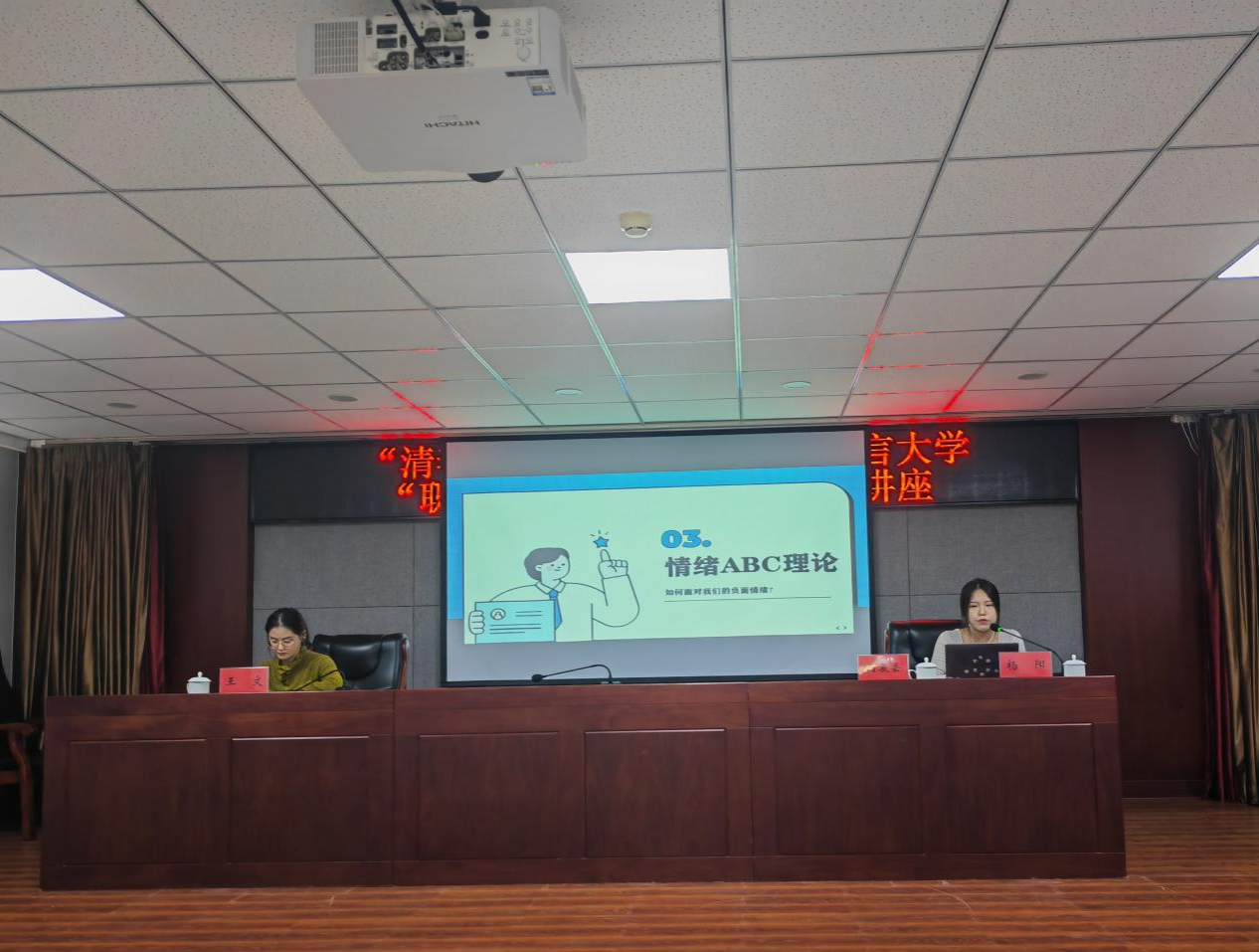 与此同时,在党群活动中心,“心理”主题讲座正在如火如荼地开展。我校心理学院王文、何嘉晨、杨阳同学以“职场减压,心理赋能”为主题,向社区工作者、社区后备干部等普及相关心理学知识。三位同学的讲座围绕职场压力现象、职场压力来源、情绪ABC理论、学会自我减压四部分进行详细介绍,消减了大家对于职场压力的偏见,并学会在日常生活中维护自我的心理健康以及正确对待他人的负面情绪。同学们通过清晰易懂的案例深入浅出为大家讲解了如何正确认识职场压力并有效缓解压力,讲座中邀请现场观众实操“正念呼吸”和“正念练习”等日常减压方式,加强学习效果,增强讲座趣味性。