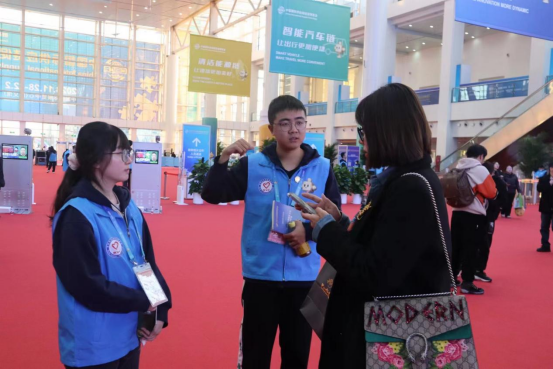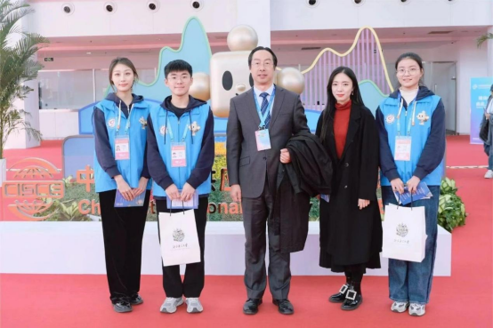 在本次志愿活动中,志愿者们分为招商组与对外联络组,在各自岗位上用心服务。其中,2021级本科生何晓怡、2022级本科生卢梓豪、张琪佳被分配到招商组;2022级本科生黄昊洋被分配到对外联络组。文学院志愿者在各自的上进行接待服务,以饱满的热情,为参展人员详细介绍各个展馆的具体内容,引领采购商前往对应展位进行咨询。同时志愿者们也为参展游客提供指引等服务,得到了一致好评。11月29日,校党委常委、副校长黄益方一行前往链博会现场慰问我校志愿者,黄益方副校长为现场志愿者们送上学校的慰问品。勉励在场志愿者们为本次活动贡献北语青年的力量。