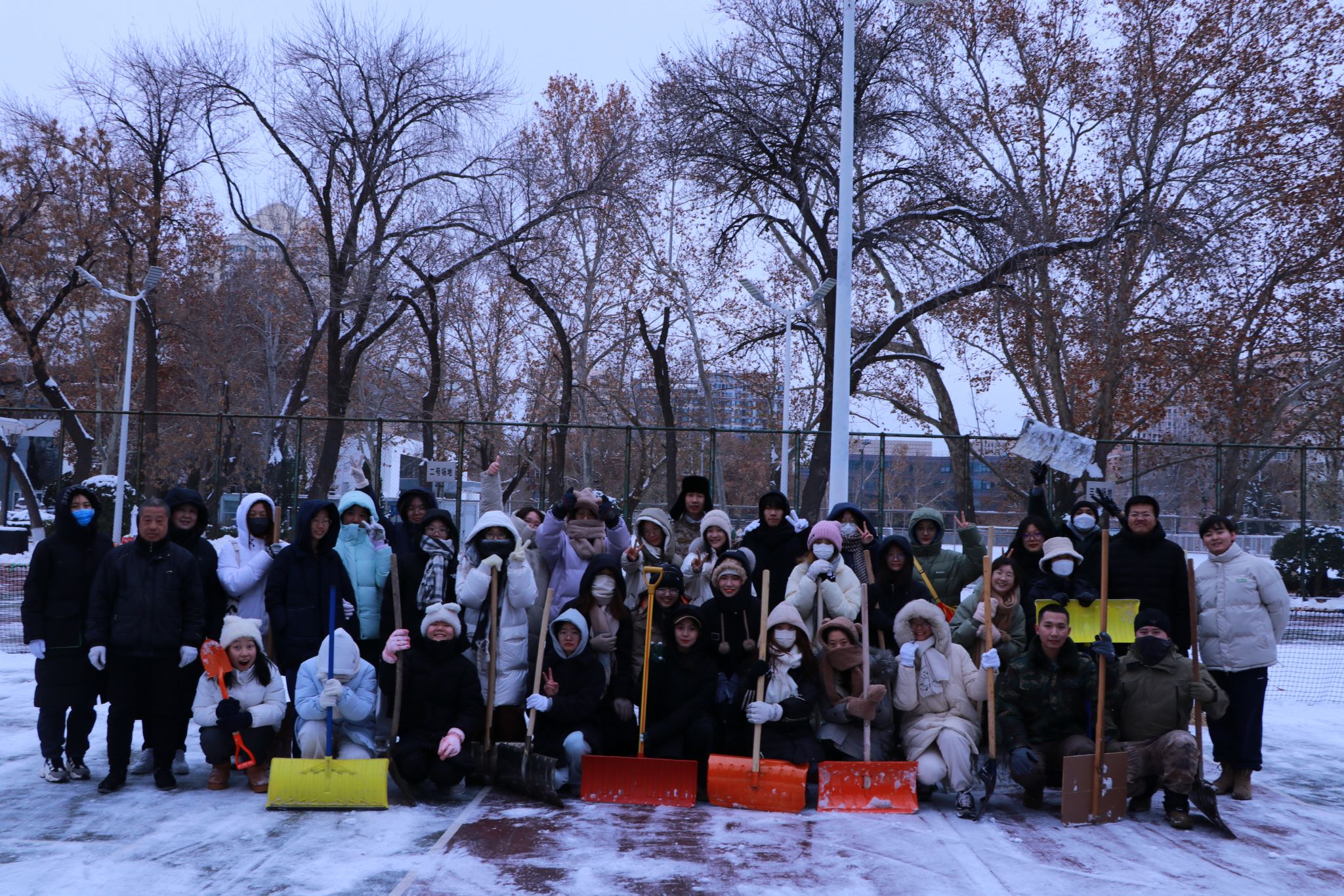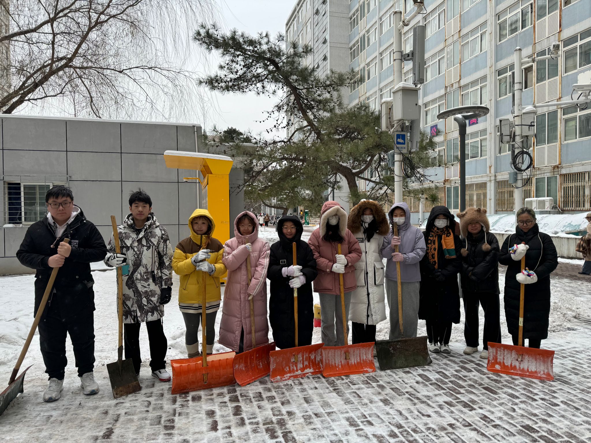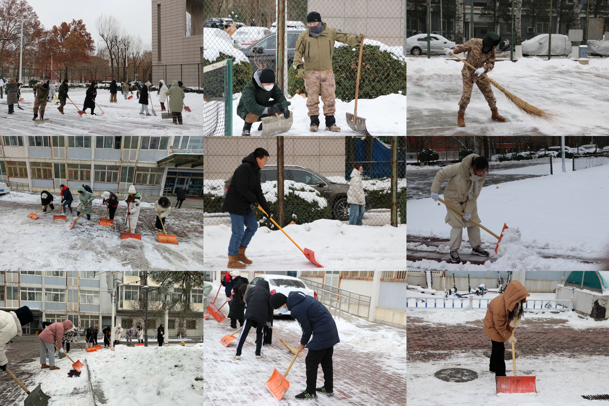 近日,北京大幅降温并伴有大到暴雪,一夜之间,北语校园里银装素裹。为保障学校师生出行安全,学生处澜阁社区管委会、后勤服务集团、退伍大学生士兵、国防教育协会共同组织扫雪除冰工作,保障了校内道路畅通,为同学们的便利出行贡献力量。