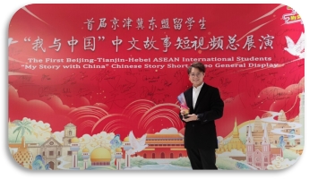 新年伊始,喜报传来。应用中文学院商务班的马来西亚同学王子航,在首届京津冀东盟国家留学生“我与中国”中文故事短视频比赛中喜获“青年才俊”奖。本次赛事吸引了来自62家推荐单位的3000余名中国与东盟国家青年踊跃参与,王子航同学自编、自导、自演的视频作品,以其生动的语言、活泼的画面讲述他与中国的不解之缘,打动了评委,从306件参赛作品中脱颖而出。