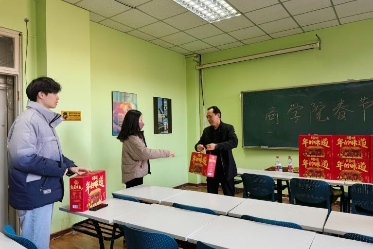 随后,领导老师们为春节留校同学送上精心准备的新春礼包,礼物满载着浓浓关切,同学们纷纷表示学院的关心关怀让留校生活倍感温暖。