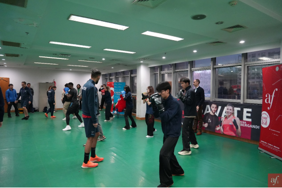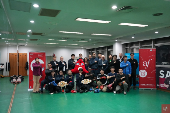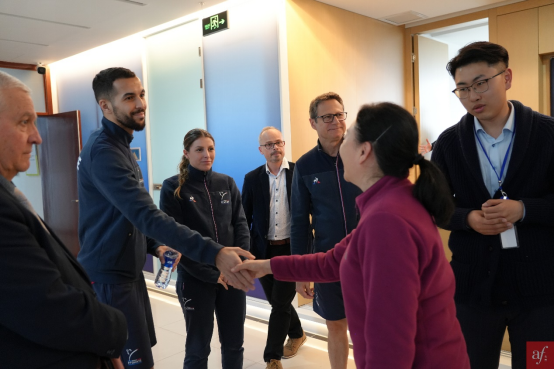 3月25日,法国法式拳击协会主席、国际法式拳击联合会副主席督玫(DHUMEZ Joël)先生,法国法式拳击国家队教练勒维耶(NEUVILLE Christophe)先生,法国法式拳击协会项目官员项目官员、技术顾问和国际法式拳击协会认证教练员桑托罗(SANTORO Jean-Pascal)先生,以及两位法式拳击世界冠军拜冈迪(Nina Bergandi)女士和弗达(Amine Feddal)先生在法国驻华使馆官员、北京法语联盟中法方校长陪同下到访北语,在教二楼北京法语培训中心(北京法语联盟)与北语体育部教师团队以及北语武术队中外学生进行了亲切的交谈,随后前往逸夫体育馆进行了竞技交流。
