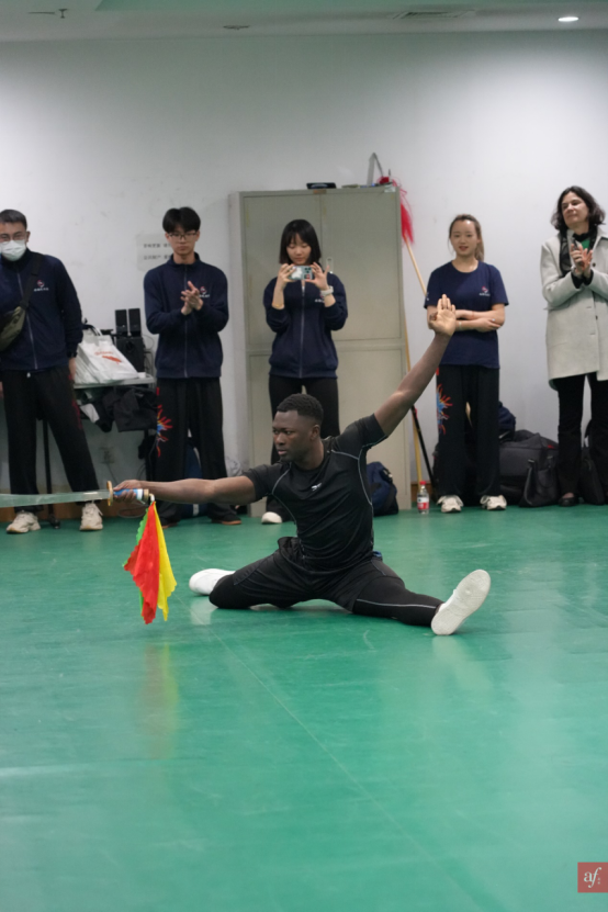 法拳代表团此次在北语进行了一场别开生面的交流和教学活动。在逸夫体育馆,北语武术队中外同学首先进行了中国功夫的表演,随后两位世界冠军当场展开教学,指导武术队同学学习、练习法式拳击。同学们饶有兴致学习法拳的同时,外宾对中国功夫也非常感兴趣,当场跟随程大力老师学习起太极拳。
