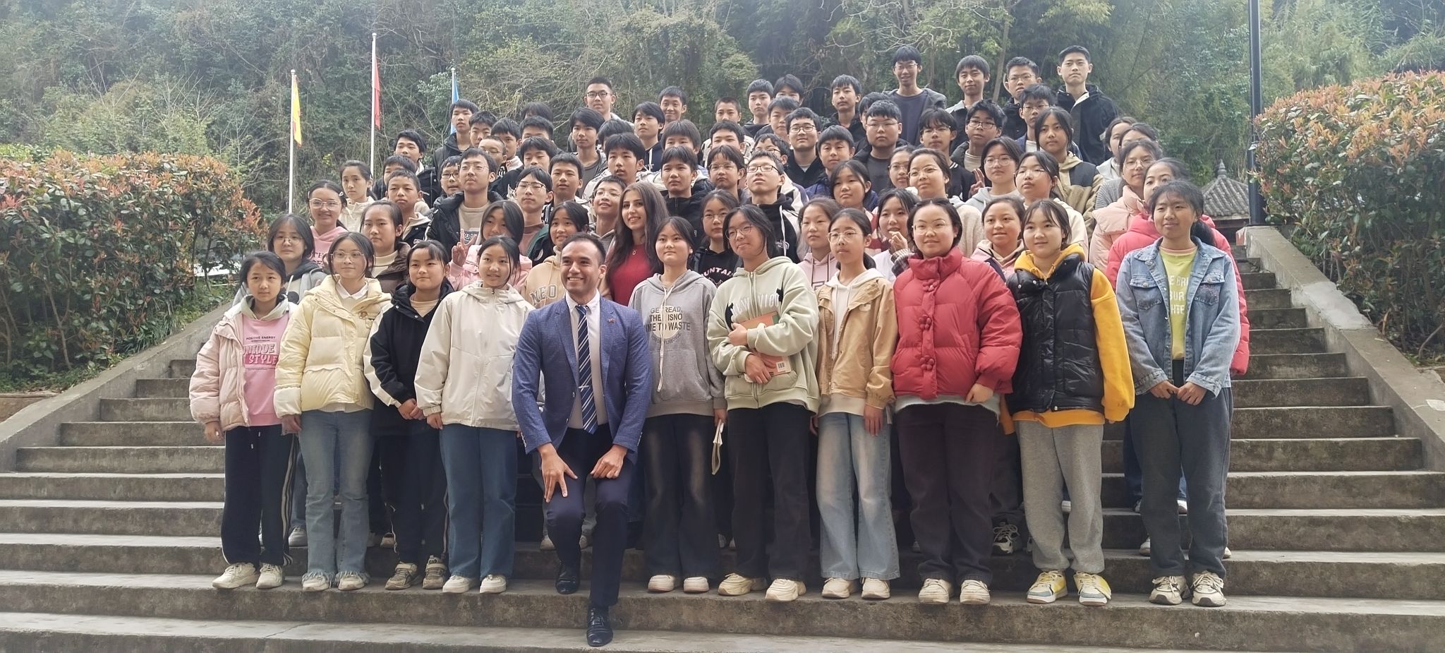 在下午的座谈会上,汉学与中国学学院党委书记马铁石向同学们介绍了北京语言大学的办学特色,重点介绍了汉学与中国学学院服务国家战略,培养知华友华国际高端人才的办学目标,欢迎巴中地区的中学生未来报考北京语言大学,鼓励同学们与外国友人多开展友好交流活动,展现中国青年蓬勃向上,开放进取的精神面貌。建议他们以自身的实例向外国友人讲述家乡以及自己不断进步的故事,多与友好的外国人事成为朋友。马铁石书记还向同学们介绍了外事常识,中外语言学习以及跨文化交流的知识,拓宽了学生们的国际交流知识。随后留学生们分别用英语和汉语向同学们介绍了自己国家的历史、文化、美食和名胜古迹等知识,让现场的同学们感到非常兴奋和快乐。