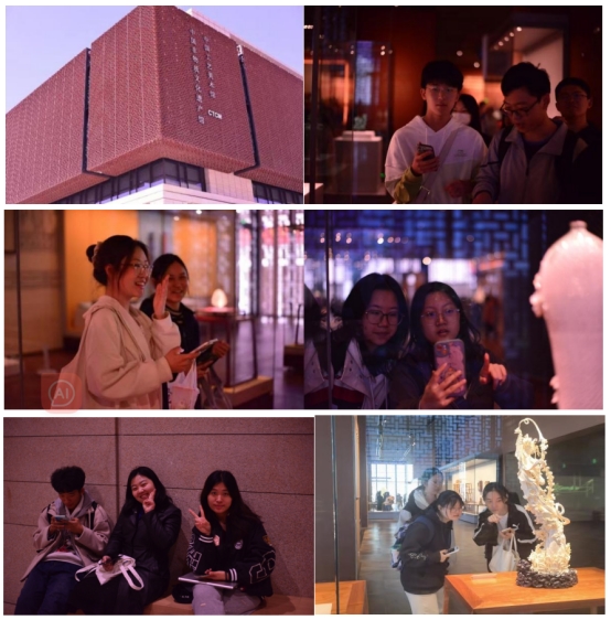 本次研学活动选取了反映中华服饰演变历史的“中国历代服饰泥塑”展览与展示中国工艺美术的历史、新中国工艺美术的成就和新时代美好生活的动人篇章的“文脉华兹”展览,作为主要研学展厅。此次活动打破班级和年级限制,以联通党团班的分组形式开展,由党支部党员、积极分子、23级班委担任组长,设置了“见微知著”“珍品细览”“追本溯源”三个互动游戏环节,帮助同学们在参观的过程中,更好地掌握中华工艺美术知识,以轻松且富有趣味性的方式激发大家的学习热情,在体验中学习,在实践中成长。