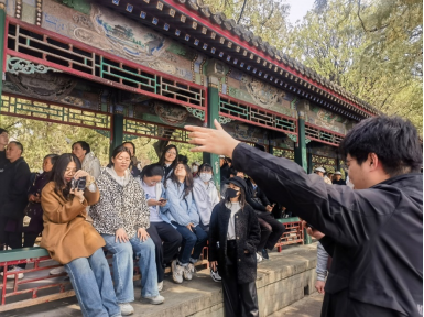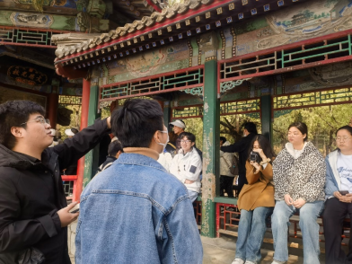 另一位同学张博进行总结:“这是一次令人难忘的班团建设活动,在两位老师的带领下,我们来到颐和园,沉浸在无边的春色中,用双眼亲自感悟中国传统建筑之美。更重要的是,我们做到了学以致用,通过实地讨论的方式来推敲各个景点最为合适的译法。日后如果碰到对此感兴趣的外国友人,我们也能够更好地传播中国形象,让对方感受到中国的美。”