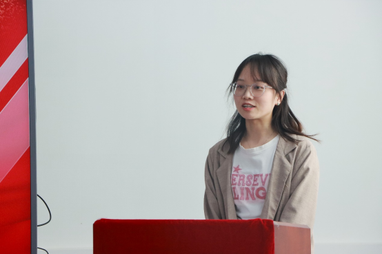 随后获奖同学代表分享了自己的获奖感言与学习收获。本科生刘晓炜同学提到需要将理论知识应用到实践中,她通过参与模拟联合国、联合国知识竞赛等活动,坚定了自身信念,努力为国家与社会添砖加瓦。